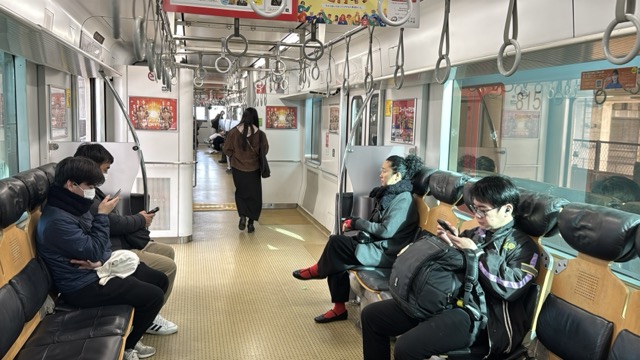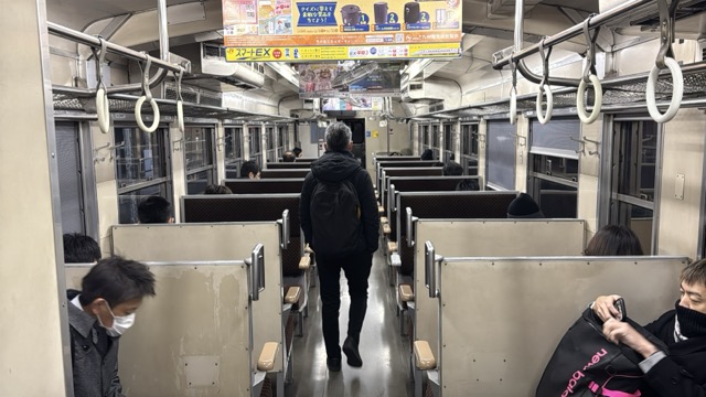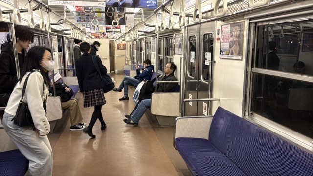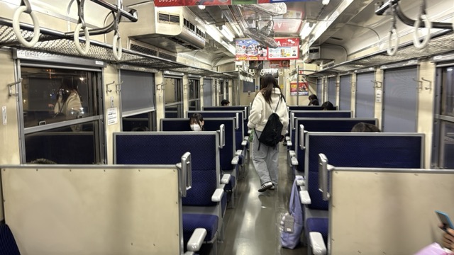 すぐ次の安部山公園駅で通路側逆向き相席ですが空席出たんで