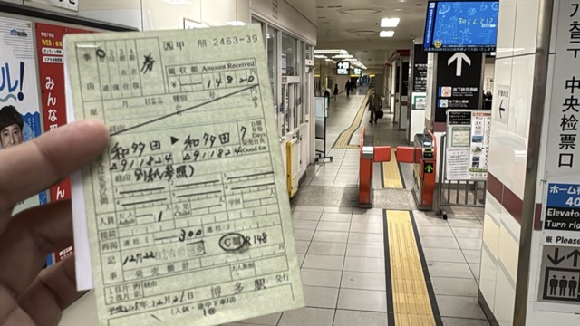 5分遅着の博多駅で下車してみどりの窓口に行列5分、発券作業8分で出していただきました、九州島内最長O型きっぷ!