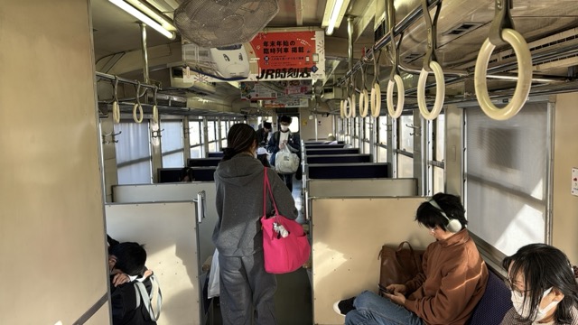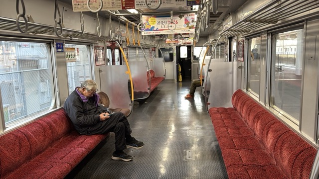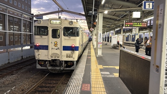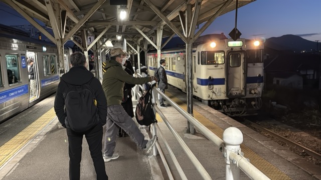 先生! 吉都線吉松行きは小林駅までは立ち客たくさん! もちろんよねざわも相席! だったんですが、そこから減ってきて、今年元日に降りた京町温泉駅で