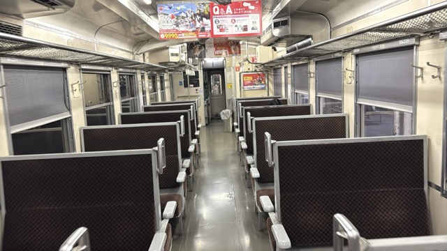 終点田川後藤寺駅まで博多からの列車の乗り継ぎでボックス相席でした!(OvO)