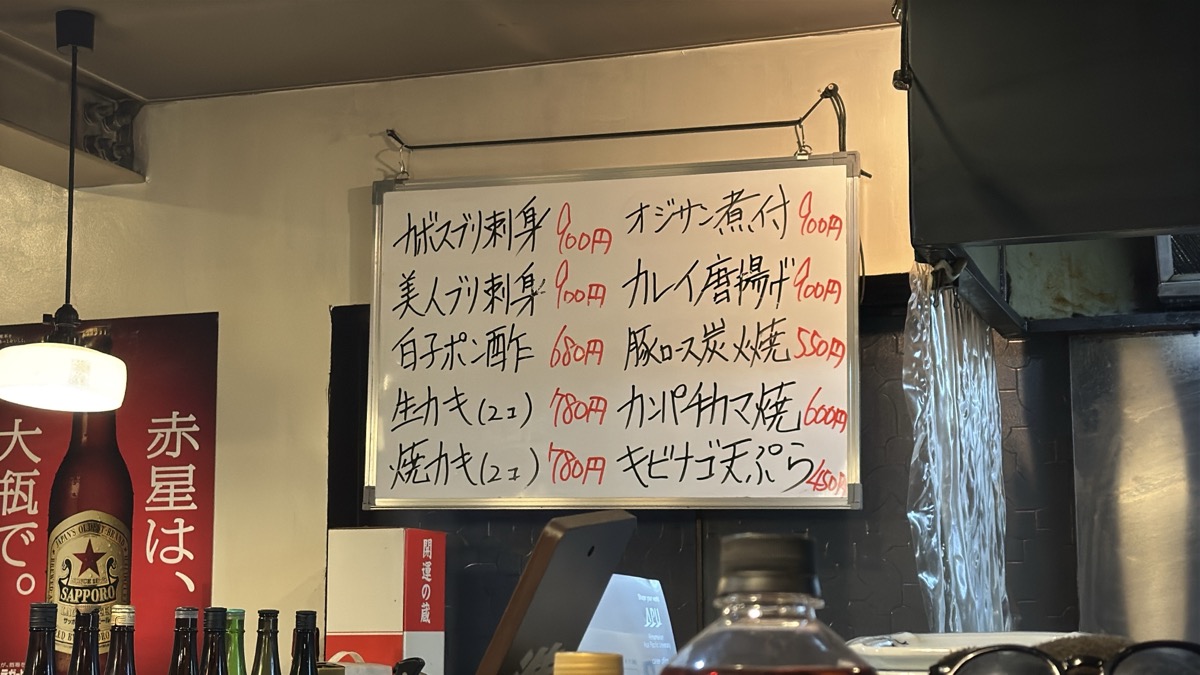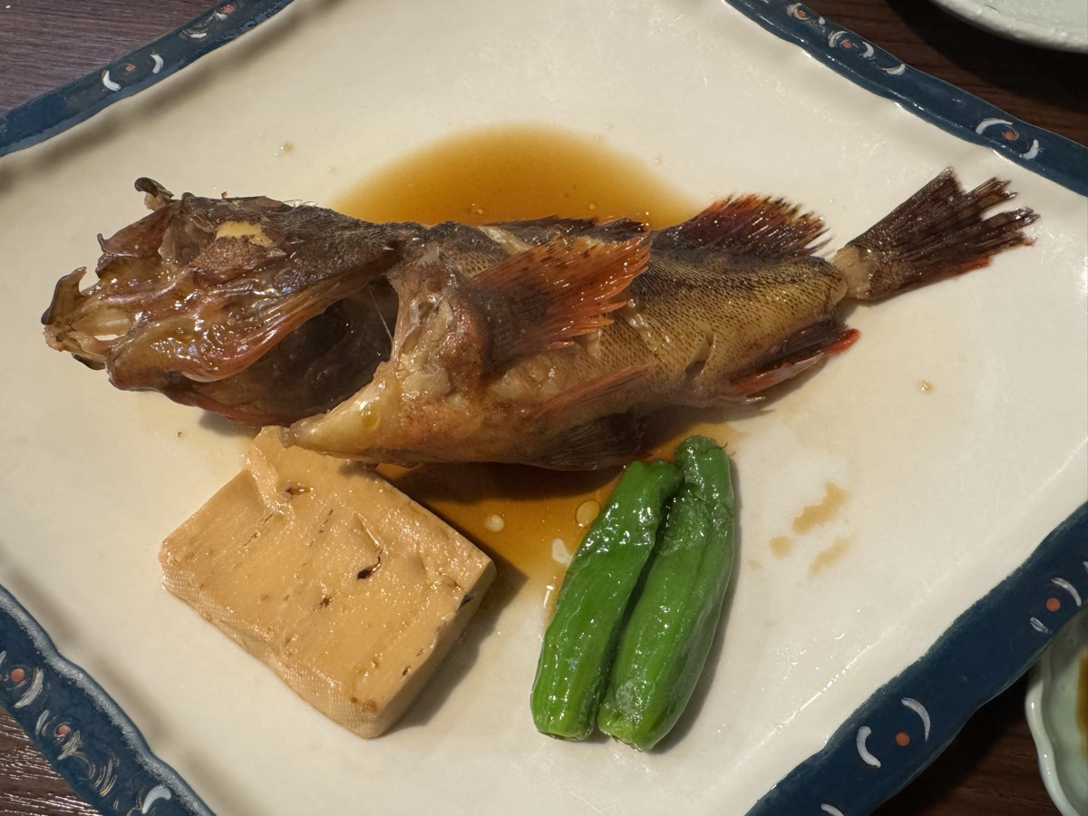 ろばた仁 竹瓦横丁店で白板メニューのオジサン煮付頼んだら「ありません」って!(^◇^;) なので黒板メニューの赤ホゴ煮付をば!!