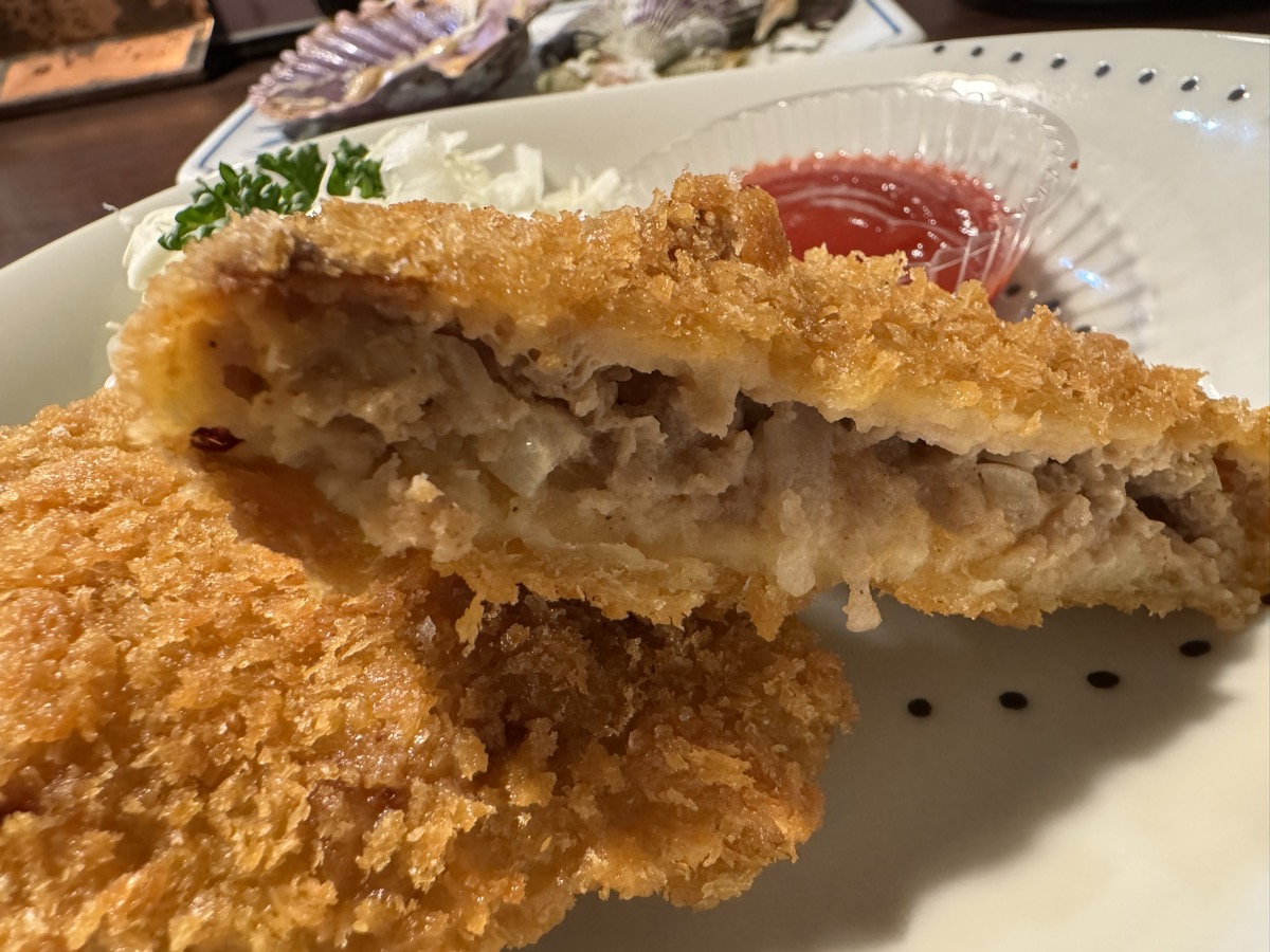 ろばた仁 竹瓦横丁店で、日出(ひじ)ポーク豚天欠品(ToT)につき日出ポーク メンチカツ、を、これを見越して切り替えた西の星ソーダ割で( ^ ^ )/□