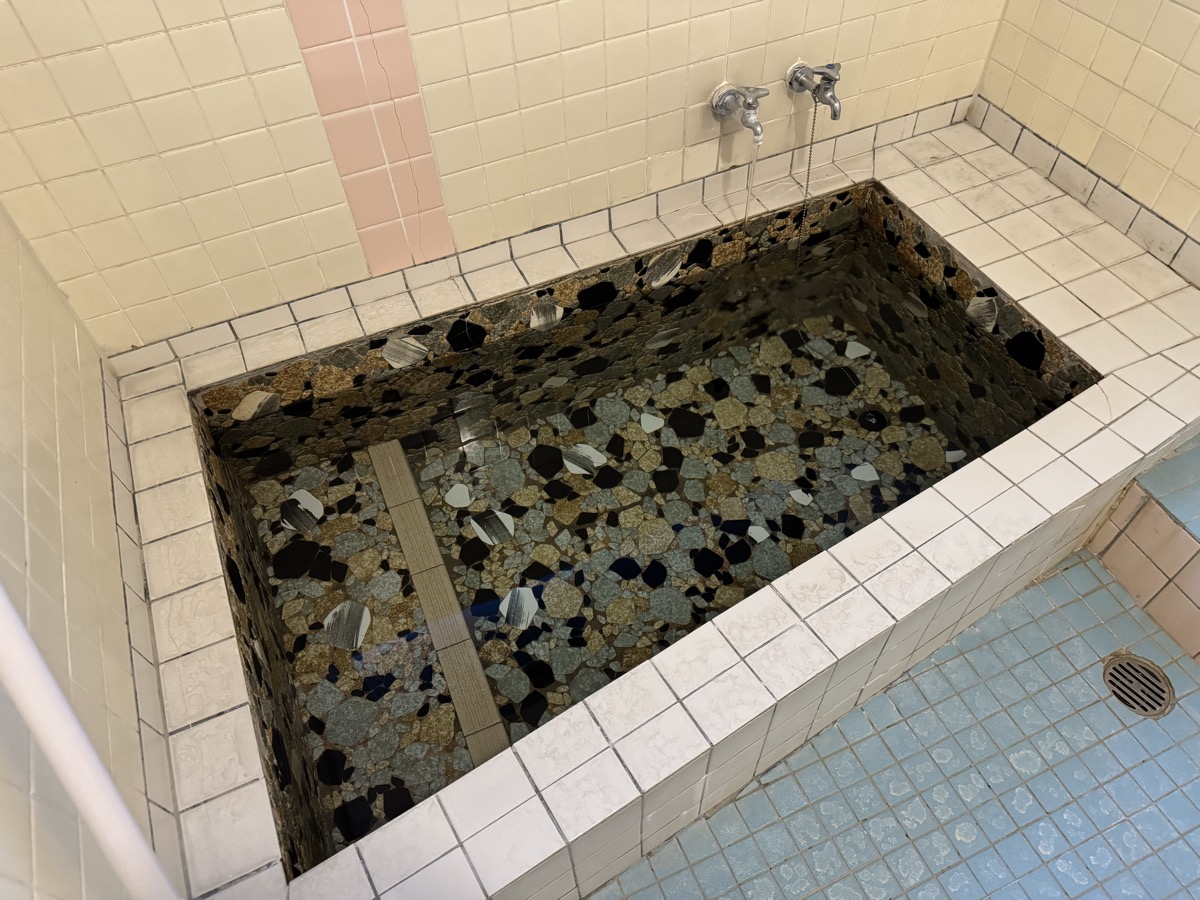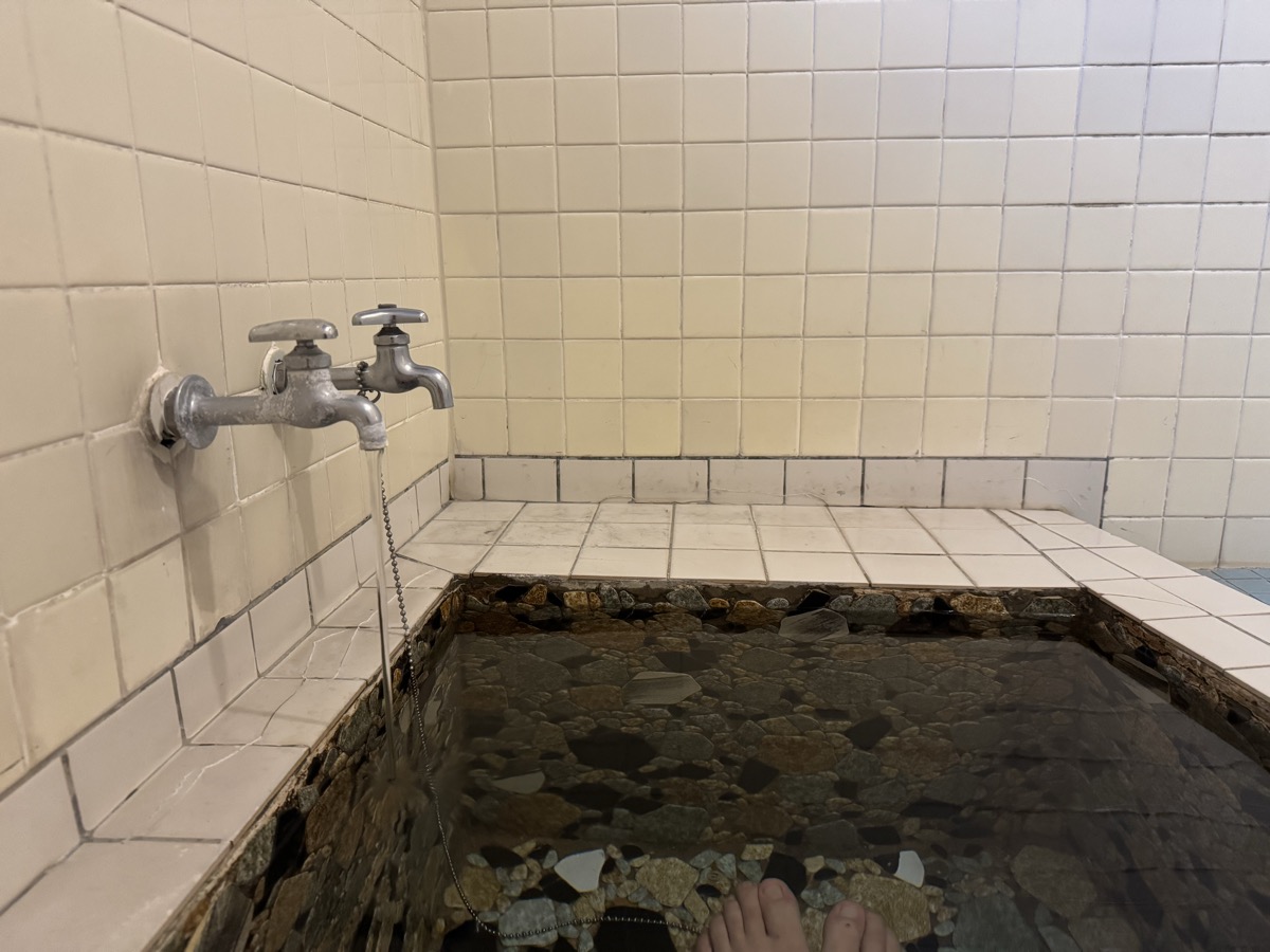 別府駅前ホテルフジヨシ、展望風呂は6?9時半と17?24時ですが部屋のバスタブには24時間温泉張れますヽ(´▽`)/