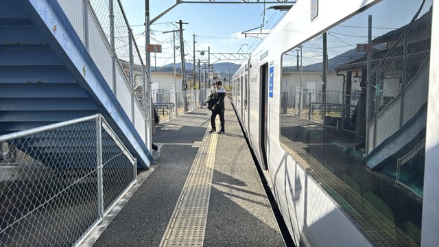 朝ラッシュの日豊本線、秘境駅竜ヶ水に交換停車ですが