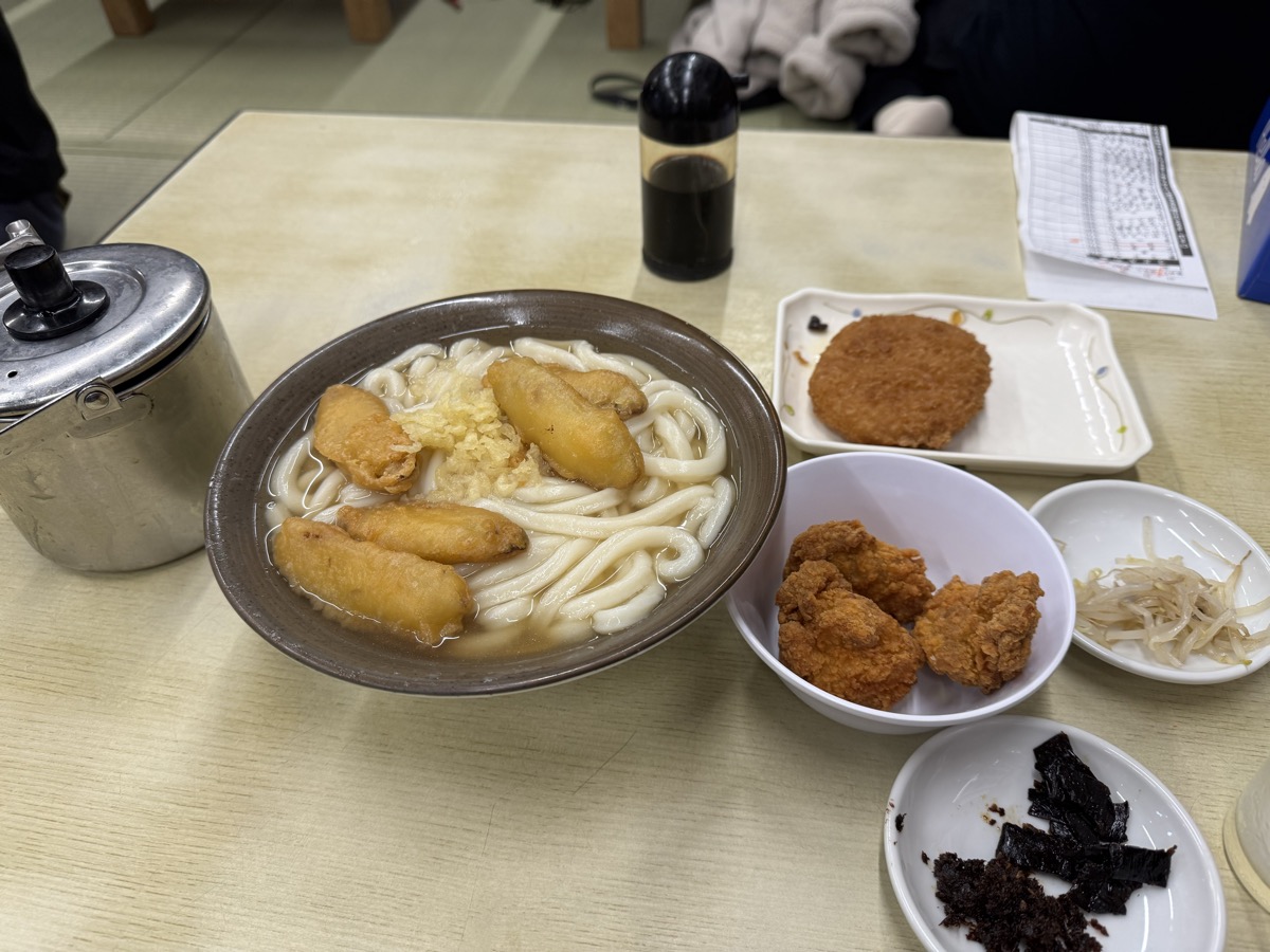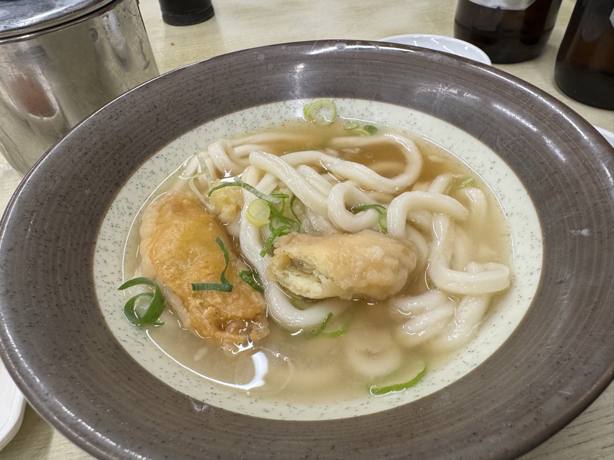 というわけで九州島内最長O型きっぷの旅完遂のセルフ打ち上げします、まずは和多田駅から徒歩300mの牧のうどん和多田店!