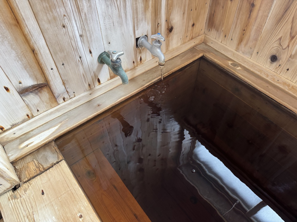 表面43℃強ですが底41℃で混ぜればすぐ熱くなる表面以外^^;大適温(((o(*゚▽゚*)o))) 木屑系アブラ臭+モール臭、スーパーぬるぬる肌触り、うす塩味の極上の湯(=´∀`)人(´∀`=)