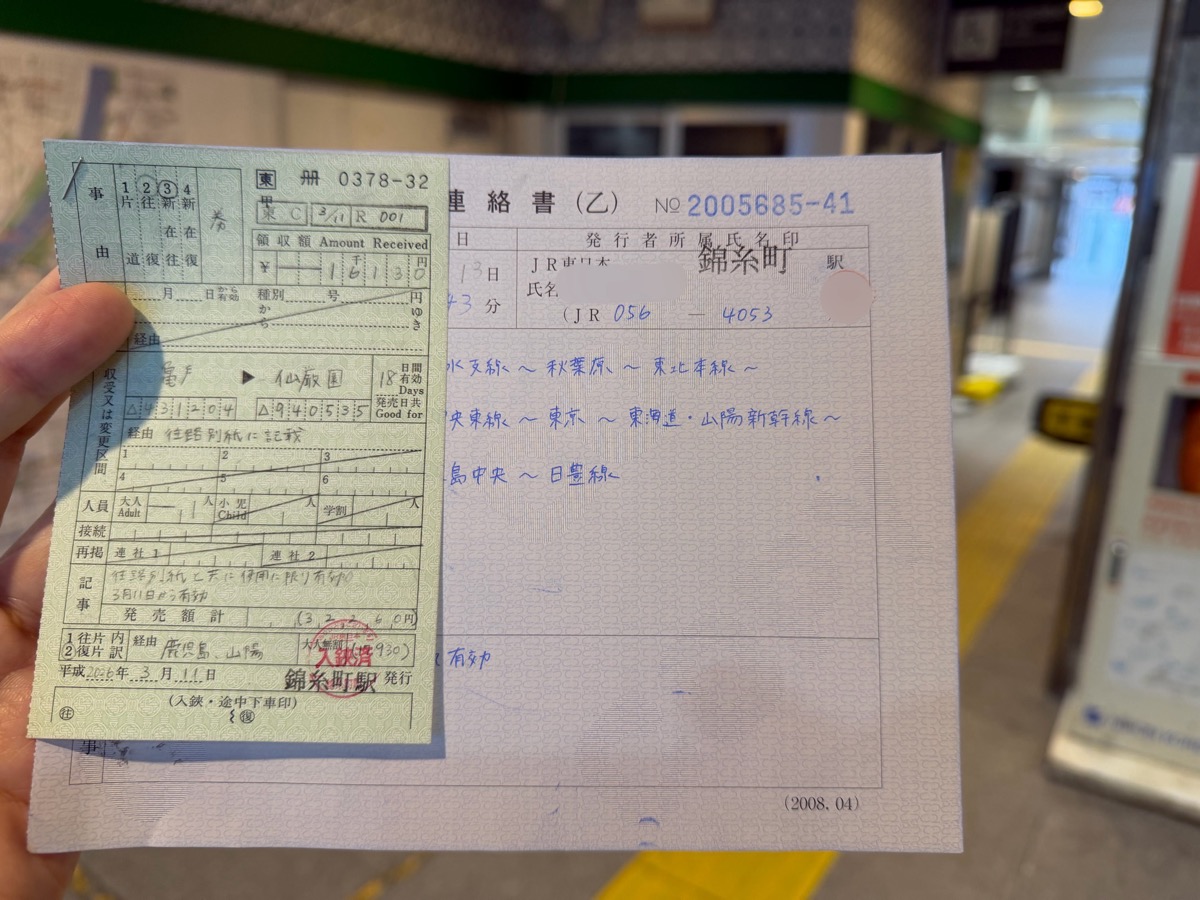 おはようございます。SNS投稿とおり、錦糸町駅北口有人改札にてぶじ別線往復割引乗車券を2葉の出札補充券で差し替えていただきm(_ _)m、時間の都合で亀戸から乗車できずそのまま入場、すでに朝ラッシュの総武緩行線です。