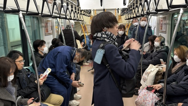 急病人看護で9分遅延、あー墓参ちょうどの1つ前の乗り継ぎにして助かった!とはいえめちゃ混みである(OvO)