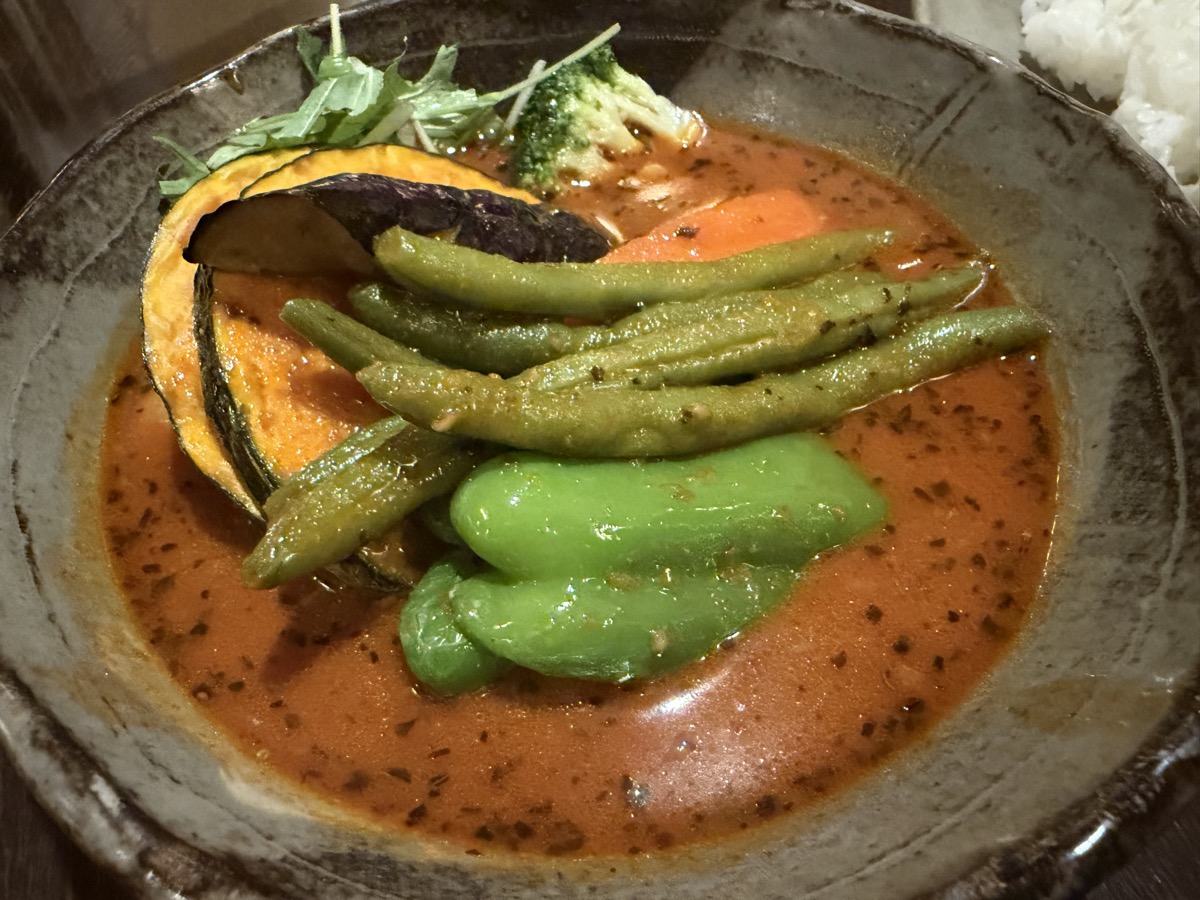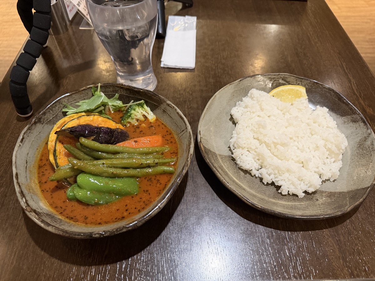 札幌のより旨味とコクが強め、野菜はどれも火通しも風味もよくってこれは(・∀・)ンマイ!! 辛さもCoCo壱15辛くらいでこれは今後再訪して積みませそう(^^)v 7分強完食ごちそうさまでした!( ^_^)/~
